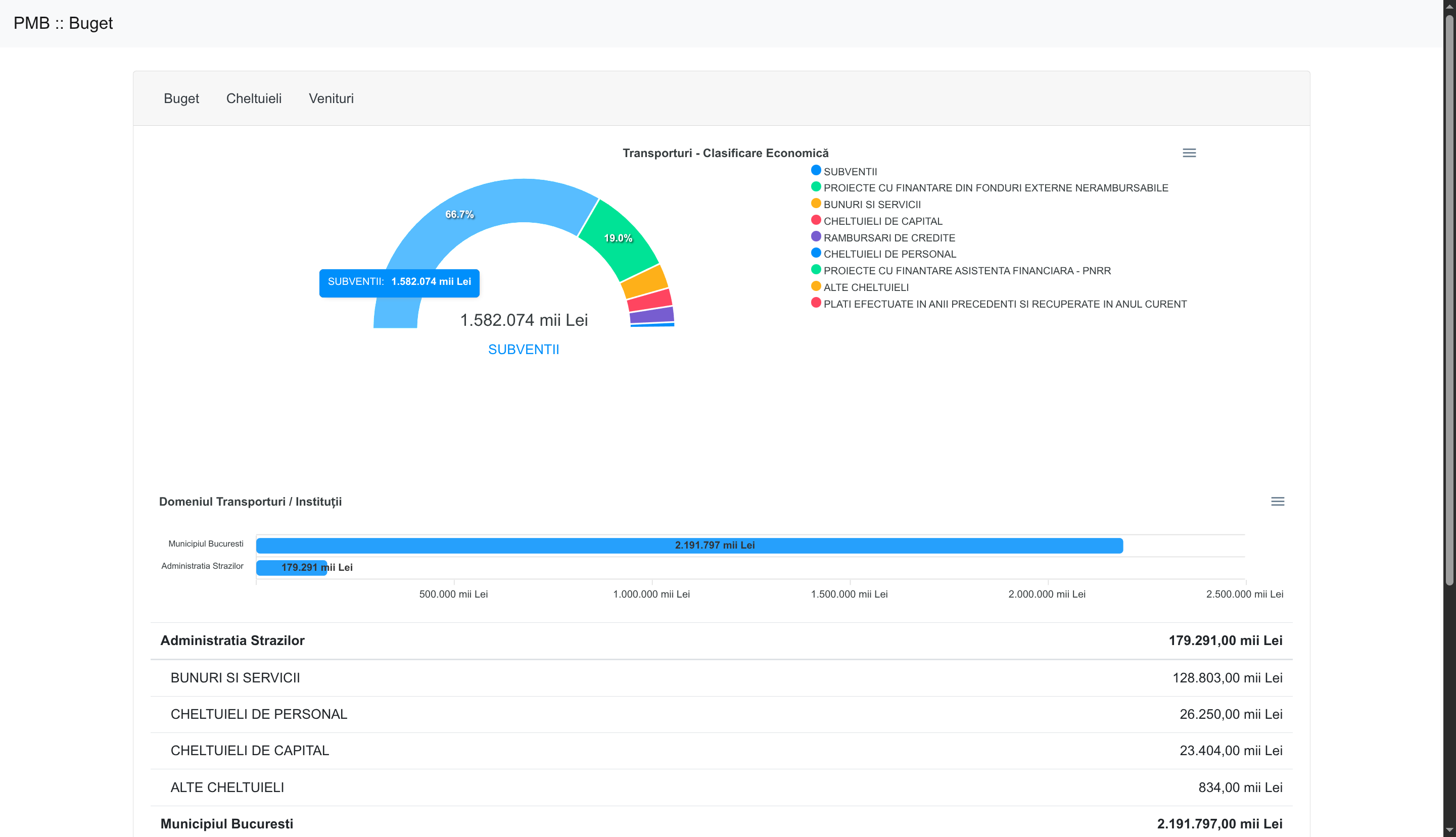 Conform Primăriei Municipiului București (PMB), bugetul Bucureștiului pe anul 2025 a avut cheltuieli pentru Transporturi în valoare de 2.371.088.000 lei, din care 1.582.074.000 lei au fost subvenții: