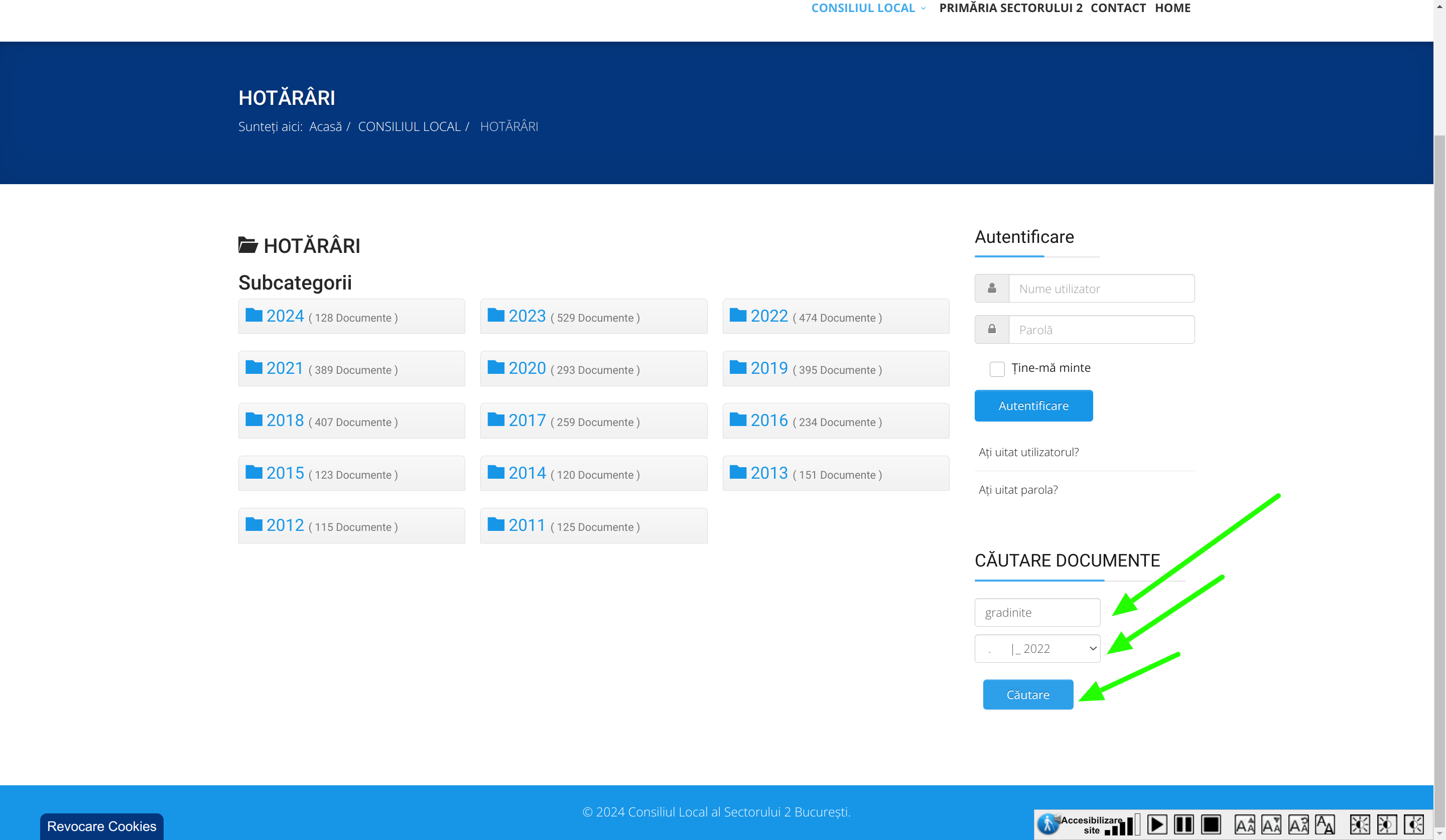 Am căutat pe site-ul Primăriei Sectorului 2 secțiunea destinată Consiliului Local. La secțiunea Hotărâri ale Consiliului Local, am găsit arhiva tuturor hotărârilor luate în perioada 2011-2024.