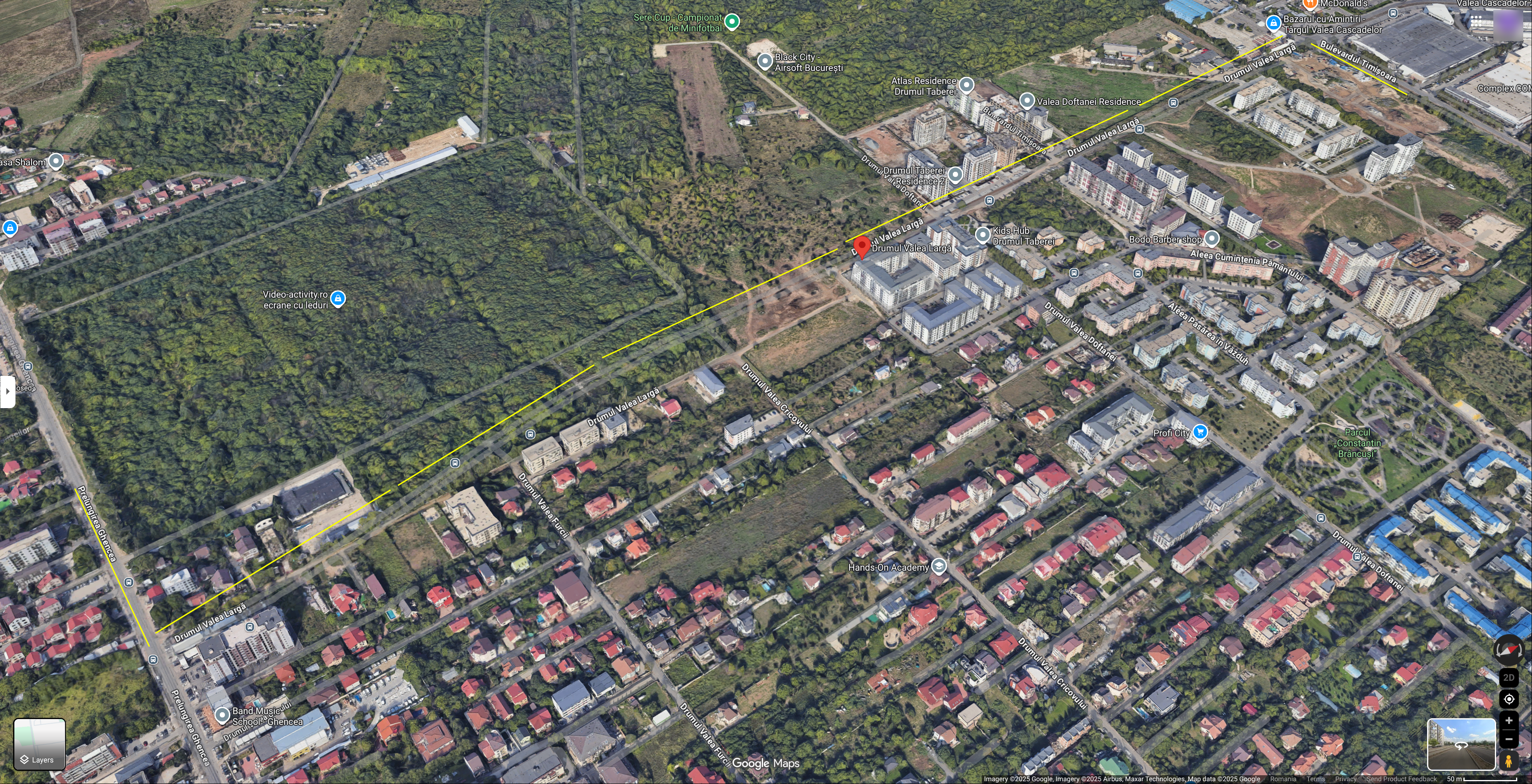 Această stradă era în aprilie 2022 mai mult un drum de pământ, neasfaltat, după cum se poate vedea din imaginea de satelit de pe Google Maps: