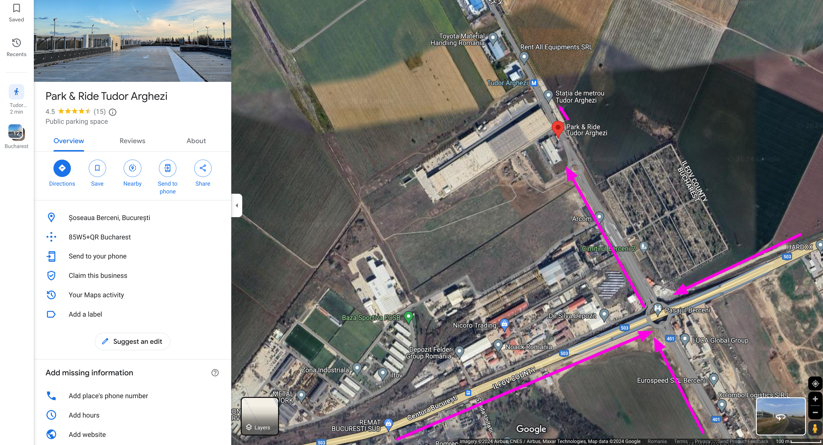 În comunicatul de presă al Primăriei Sectorului 4, care anunța inaugurarea stației de metrou "Tudor Arghezi", este menționată și parcarea de tip park&ride: