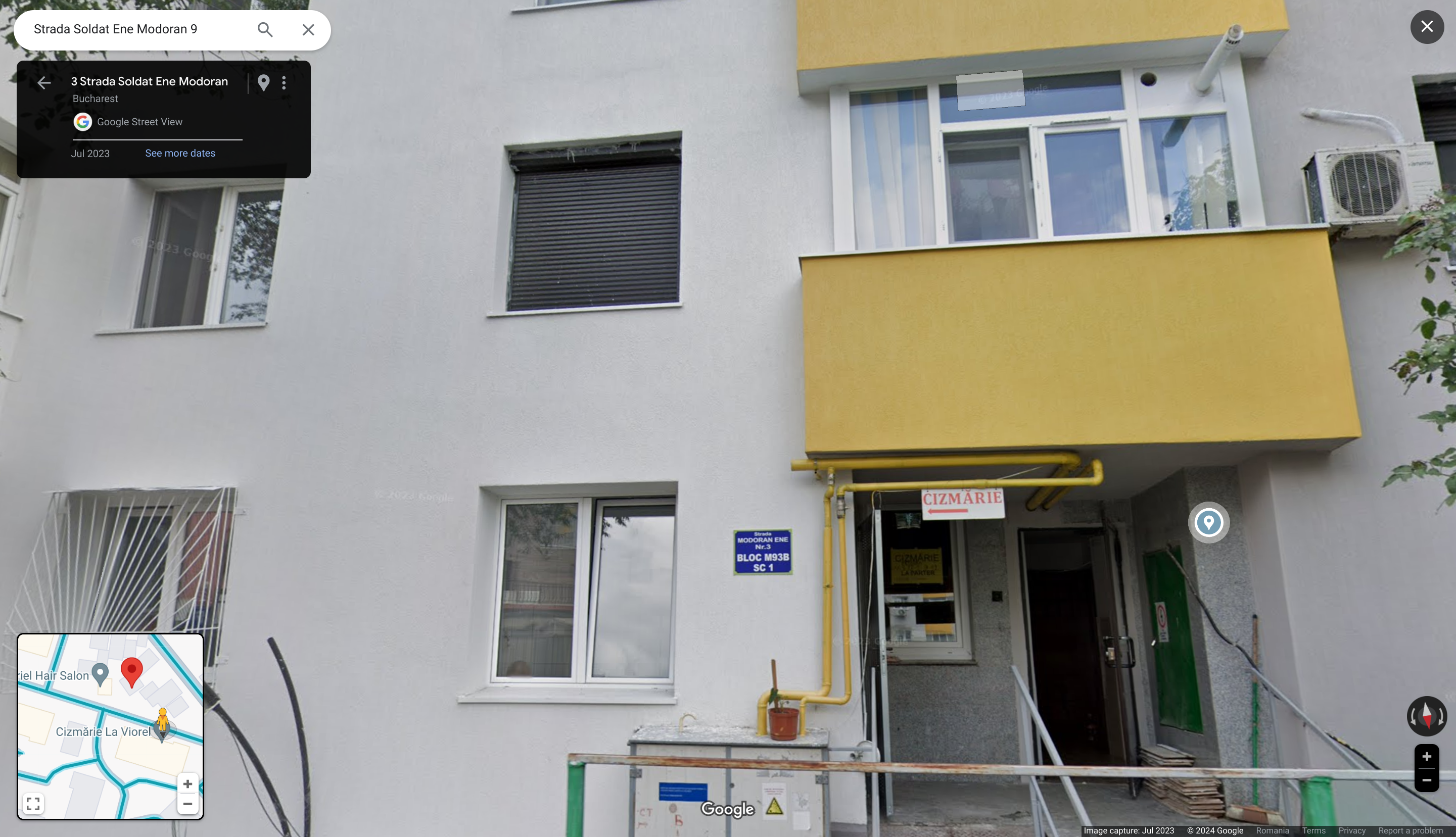 din lotul de 75 blocuri, verificăm blocul M93B de pe strada Soldat Ene Modoran nr. 3 (imagine de pe Google Maps din iulie 2023):