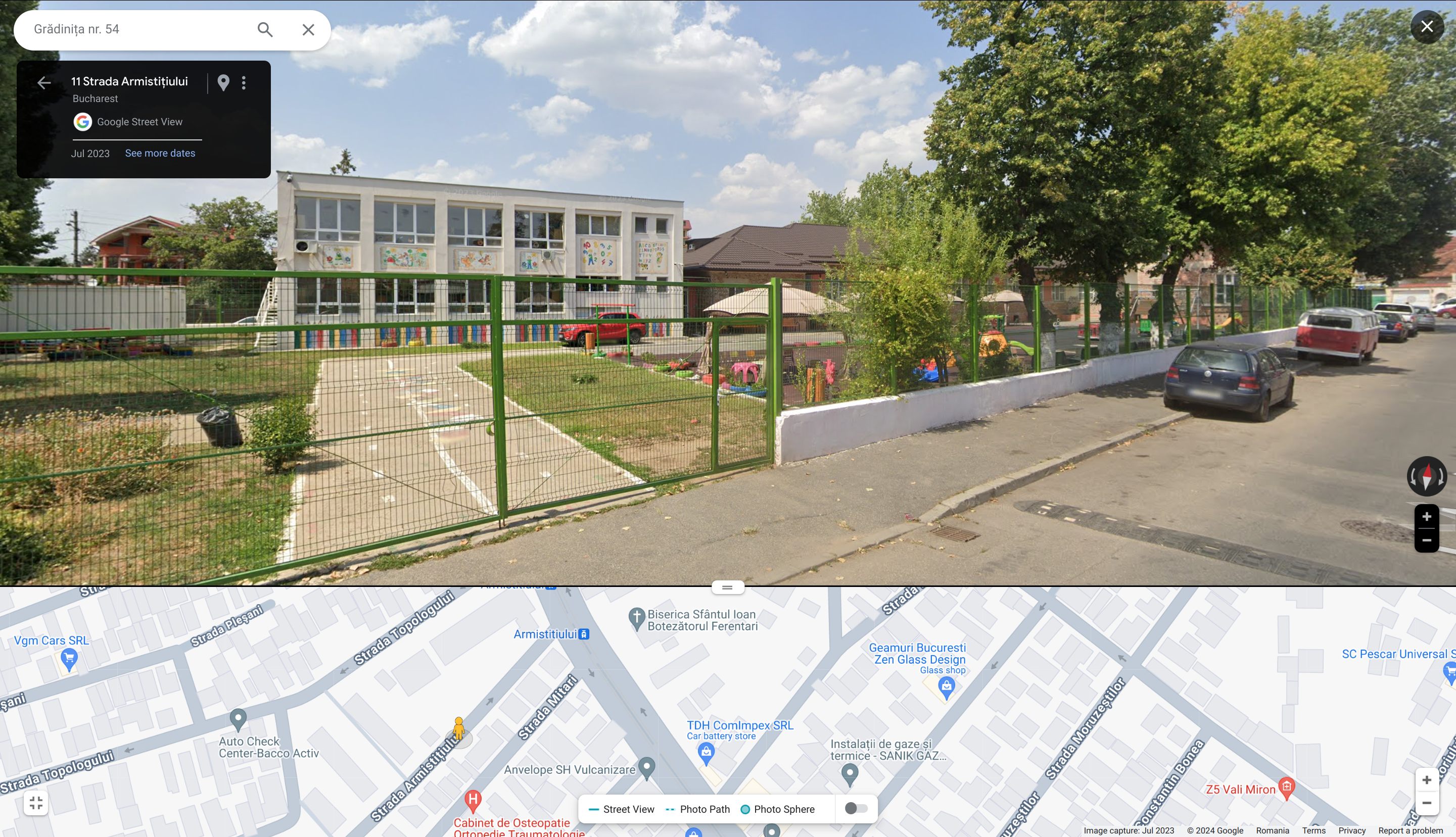 Deoarece o hotărâre de consiliu local nu înseamnă neapărat că acel proiect chiar s-a implementat, vom verifica cu imagini de pe Google Maps cum arătau în iulie 2023 câteva din grădinițele și școlile menționate în listele de mai sus: