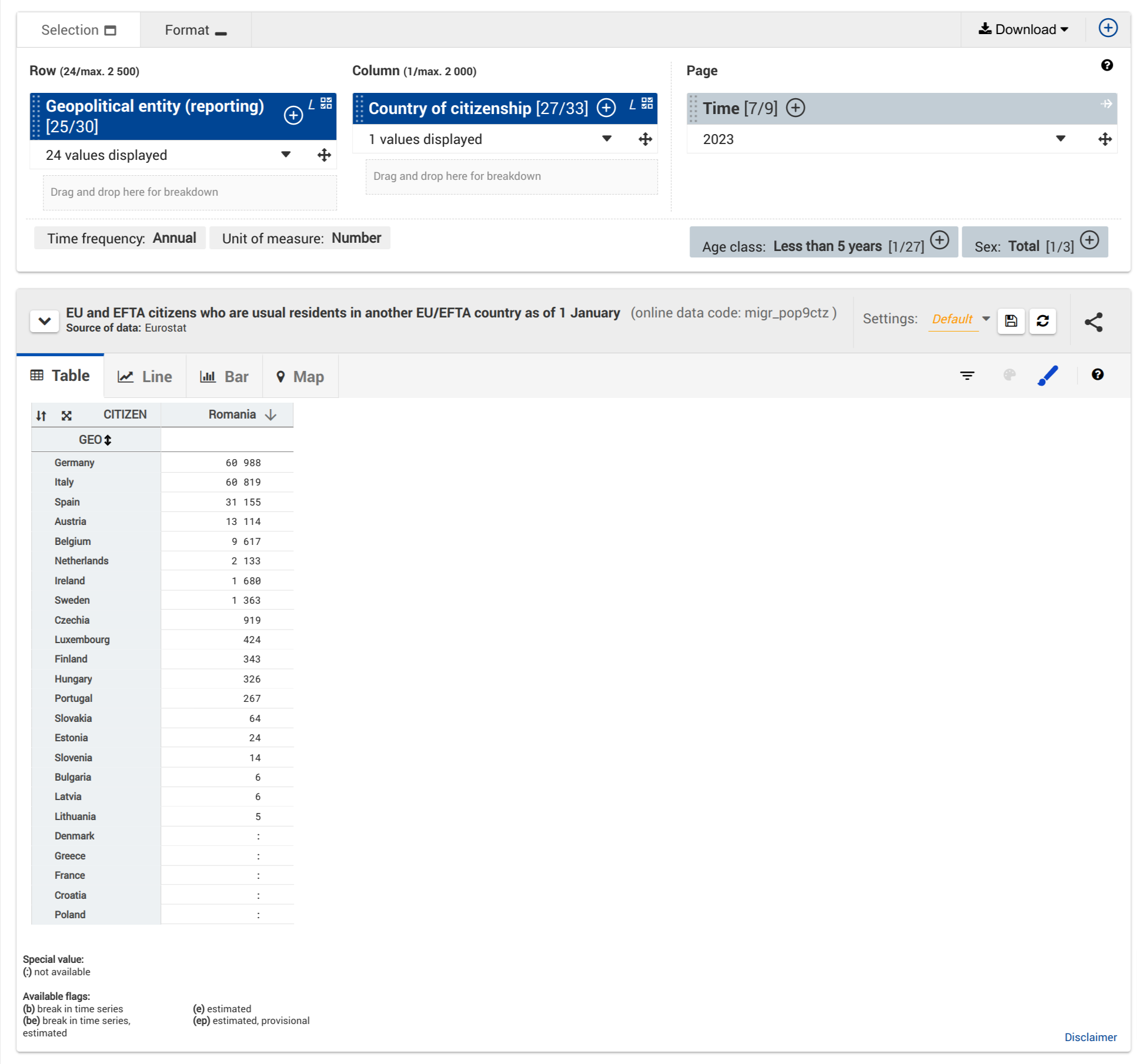 Conform datelor Eurostat, la 1 ianuarie 2023 existau 183.267 de cetățeni români cu vârsta sub 5 ani care erau rezidenți obișnuiți1 în alte state UE/EFTA2: