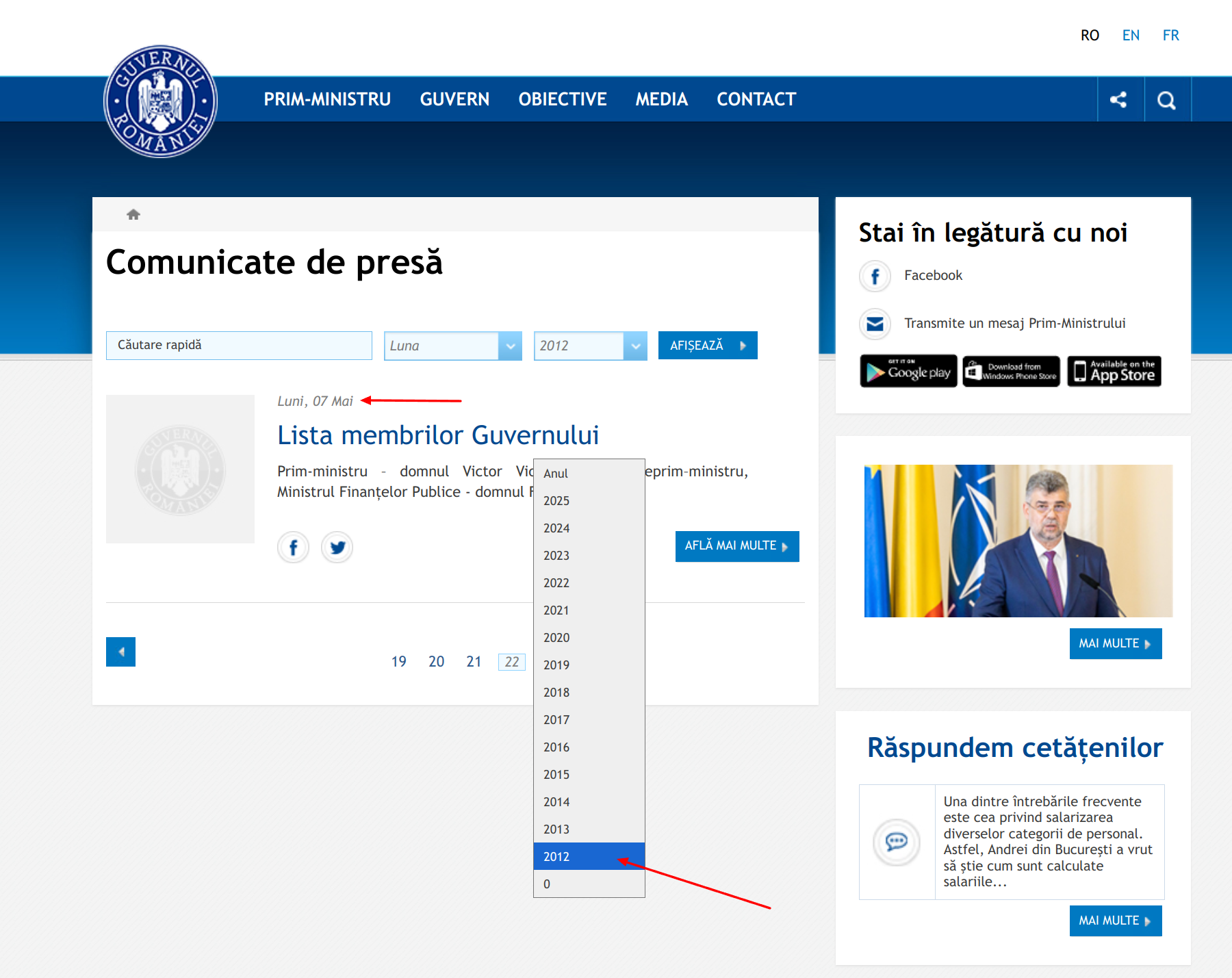 Pe site-ul Guvernului, nu am găsit comunicatul de presă în care Daniel Funeriu anunțase lansarea luptei anti-plagiat în România, deoarece cel mai vechi comunicat de presă existent pe site-ul gov.ro este din data de 7 mai 2012, deci ulterior mandatului pe care l-a avut Funeriu. Vezi captura de ecran de mai jos: