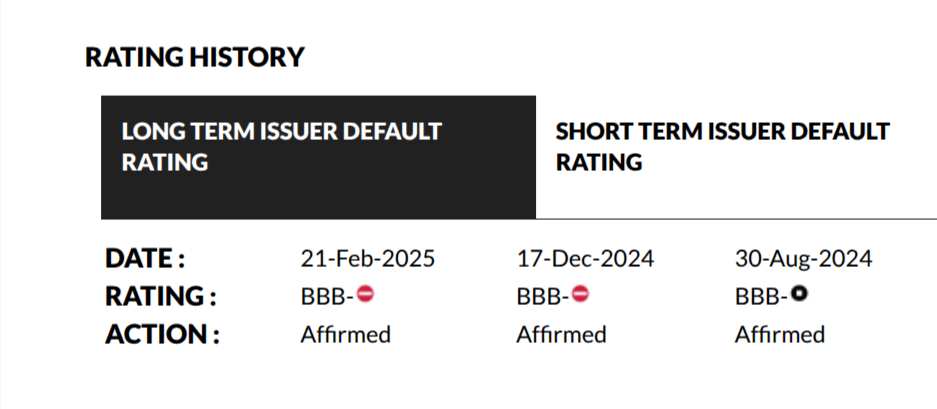 | Fitch | AAA, AA, A, BBB | BB, B, CCC, CC, C, RD, D |