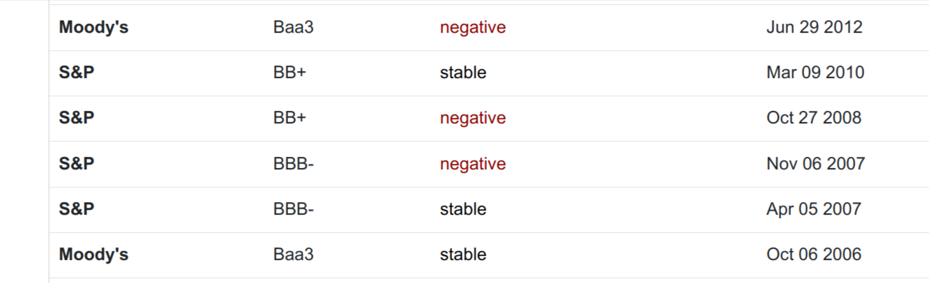 | Fitch | AAA, AA, A, BBB | BB, B, CCC, CC, C, RD, D |
