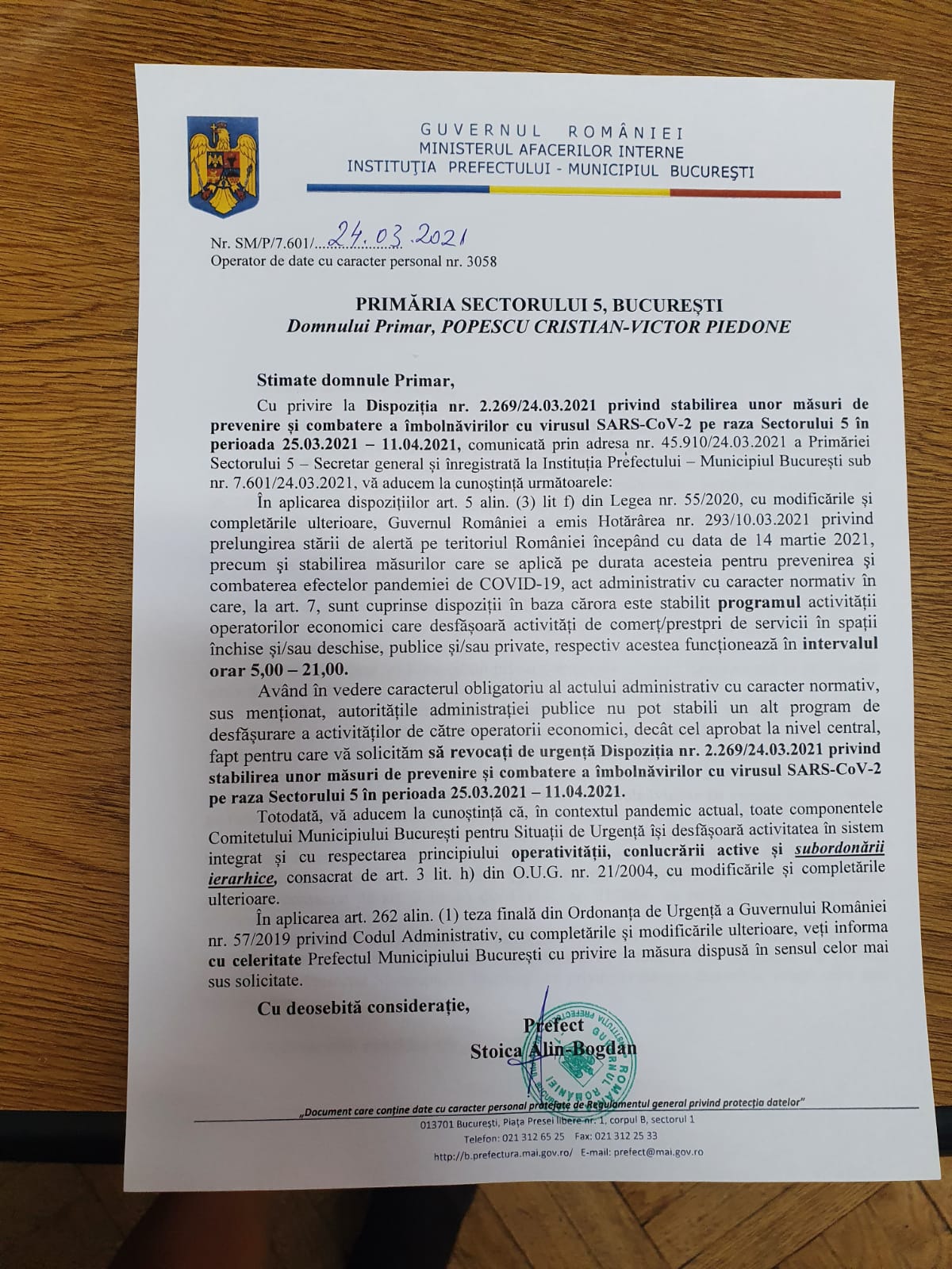 Poate un primar de sector să impună restricții suplimentare în sectorul său, pentru a limita pandemia?insert_link