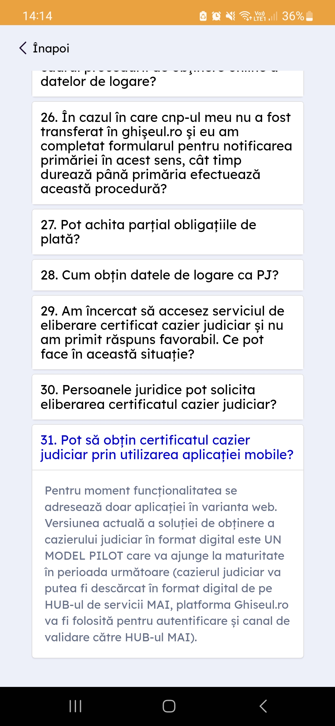 - cu autentificare, pe website-ul ghișeul.ro putem plăti 345 taxe, dar din aplicația mobilă putem plăti 310 taxe;