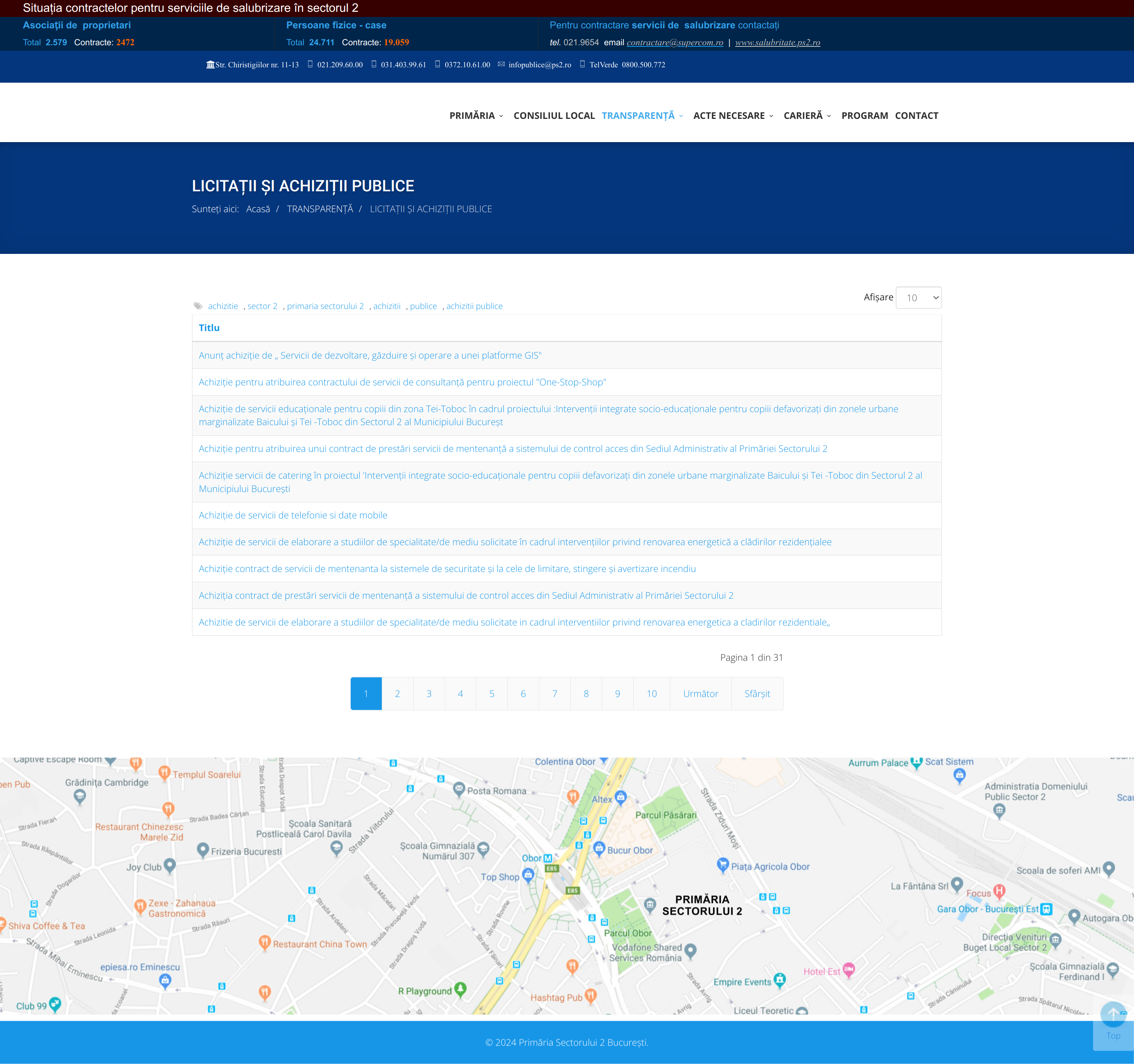Pe site-ul Primăriei Sectorului 2, la secțiunea "Licitații și achiziții publice", am găsit o listă de 309N1 licitații și achiziții publice: