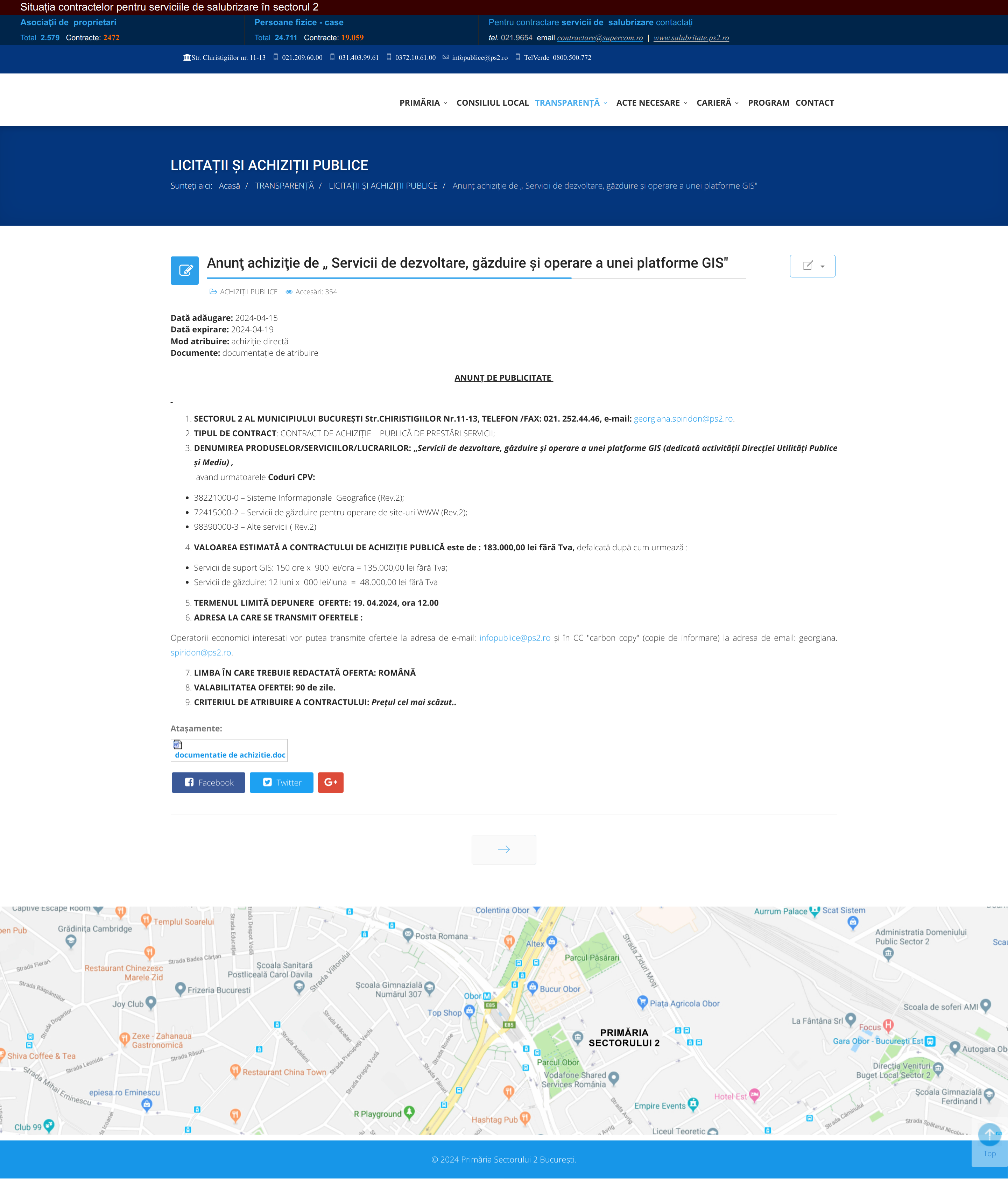 Captură de ecran pentru pagina Licitații și achiziții publice, de pe site-ul Primăriei Sectorului 2.