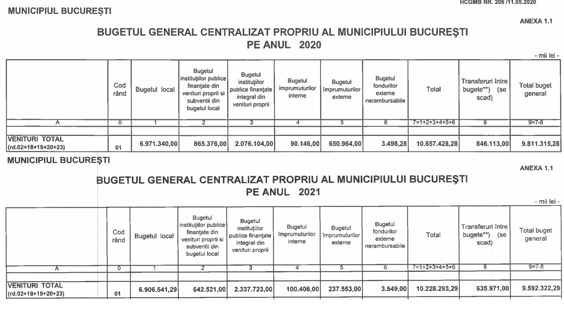 Potrivit proiectului pus în dezbatere de Nicușor Dan, Primăria Capitalei avea pentru anul 2021 un buget estimat de 6,9 miliarde lei (pagina 1, rîndul 01), iar cu tot cu instituțiile subordonate, credite și fonduri europene ajungea la 9,5 miliarde de lei. Veniturile bugetului general centralizat al municipiului București pe 2021 fuseseră prognozate la circa 9,59 miliarde de lei, potrivit proiectului.