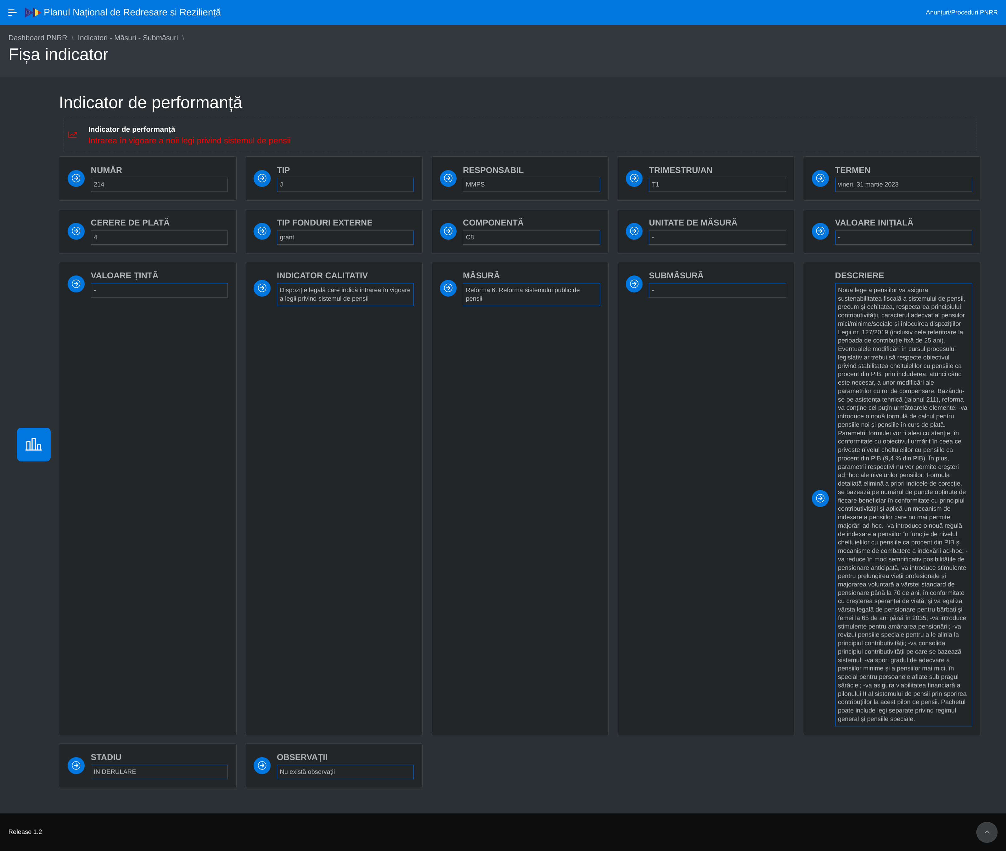 Pentru a vedea starea curentă a jalonului 214 din PNRR: