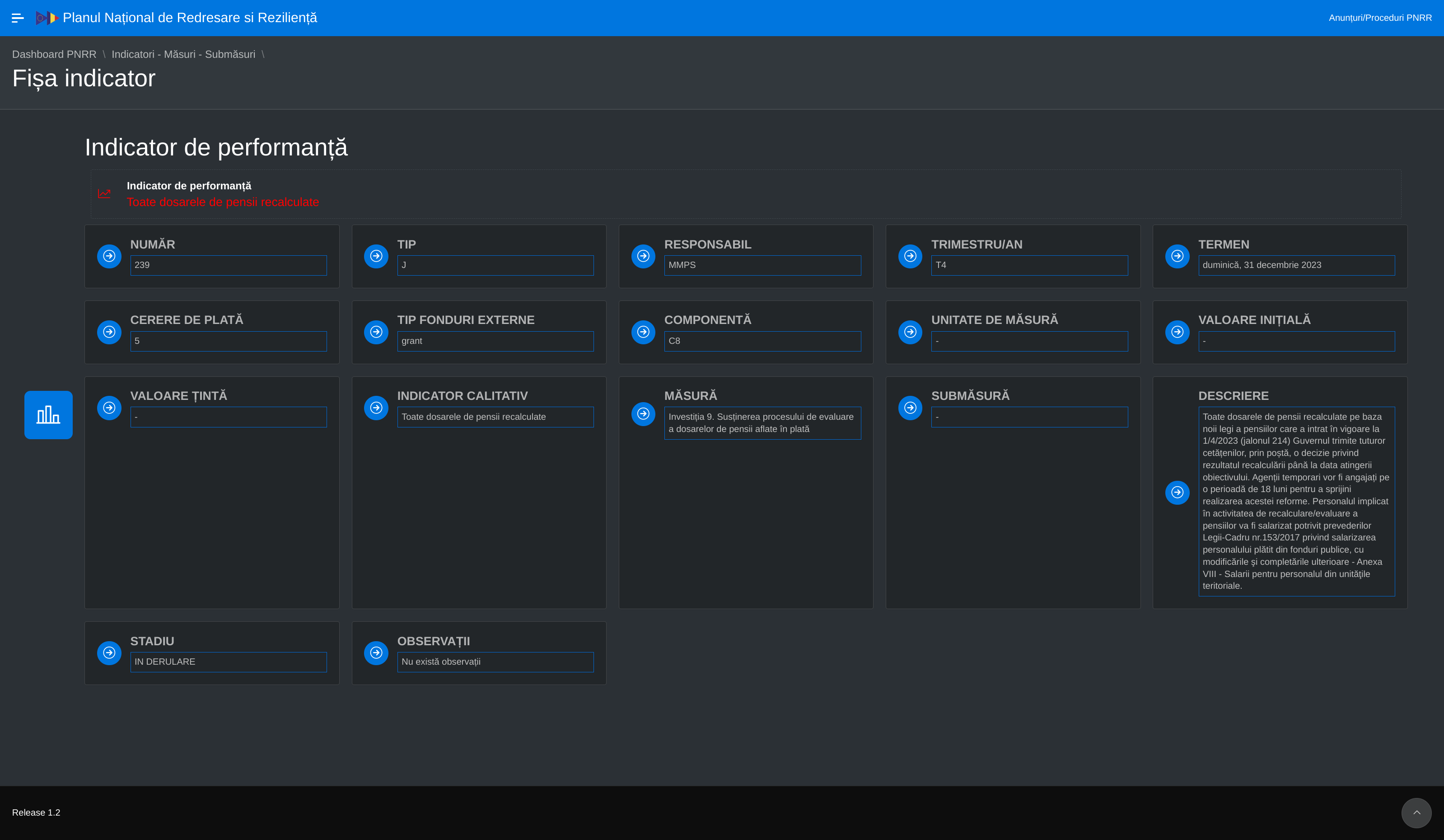 Pentru a vedea starea curentă a jalonului 239 din PNRR: